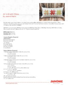 All is Bright Pillow Tutorial by Joanna Marsh Free PDF instructions for the All is Bright pillow by Joanna Marsh for Janome Post navigationPrevious post: All is Bright Pillow tutorial Leave a Reply Cancel replyYou must be logged in to post a comment.