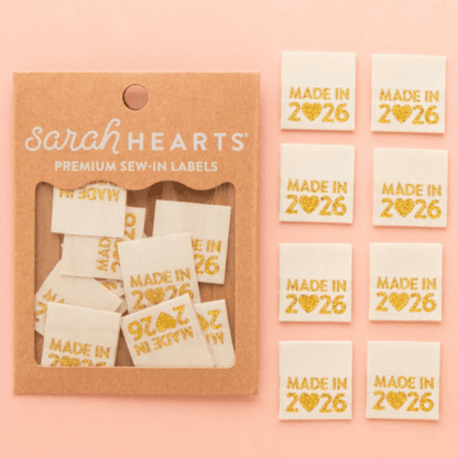 Add a personal touch to your handmade pieces with our Made in 2026 Gold Woven Labels. Made with metallic gold thread on a cream background, easily sew them into bags, garments, or quilts to showcase the date of creation. The labels are fully washable and can handle the heat of the dryer.