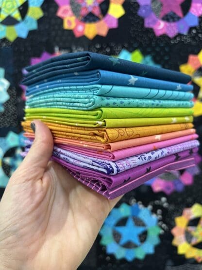 This bundle is not a full kit for the Lucky Stars quilt, but is a great stash builder for those spooky, bright, rainbow colors.