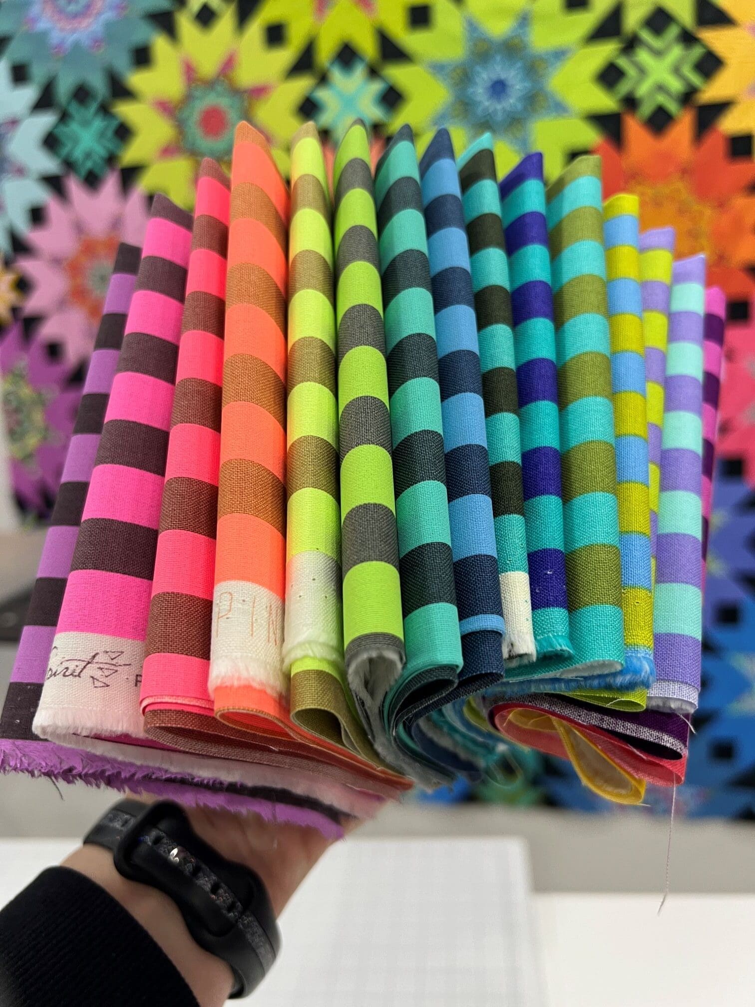 This is a curated bundle that is a perfect starter pack for fussy cutting the Divination EPP quilt. All of the smaller stars within Divination were made from these stripes.