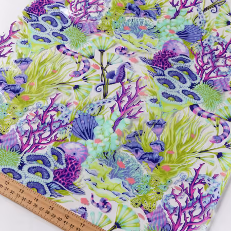 Bring a splash of underwater magic to your sewing projects with Tula Pink’s Floral Reef Collection. Each design is printed on durable, easy-to-clean TPU vinyl that’s perfect for bags, accessories, and home décor. Available in 1/2 yard cuts.