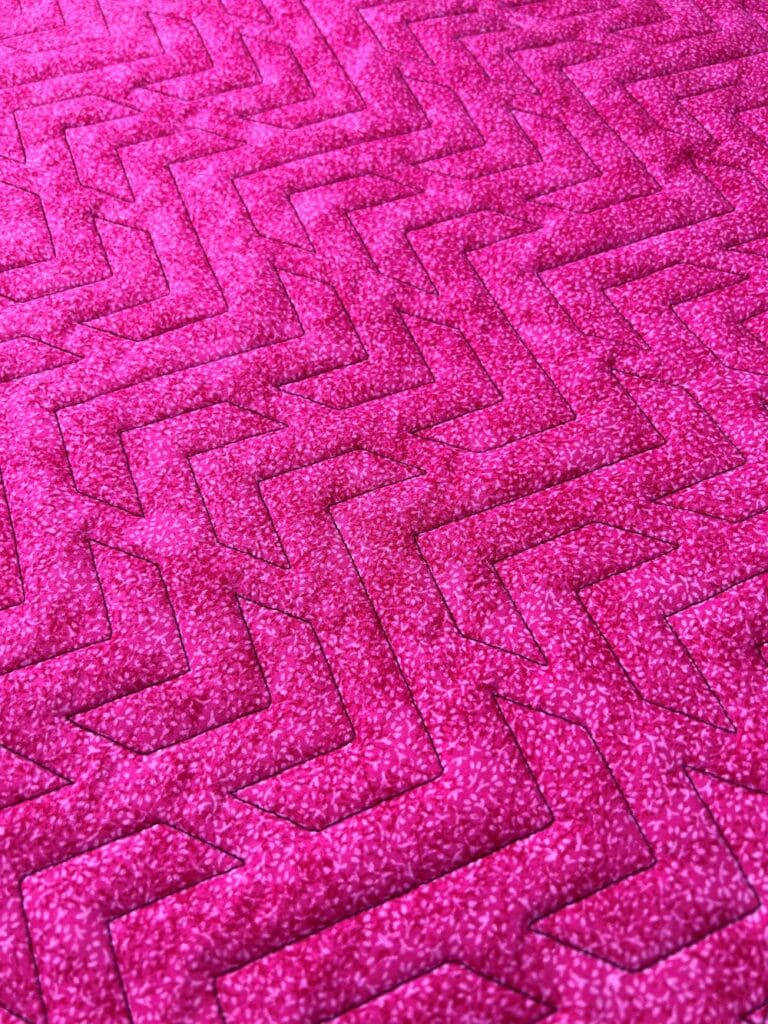 And the Cupid’s Arrow design is great for creating a modern, even texture. The quilting is evenly distributed throughought the design and there is no backtracking, or difficult alignment when repositioning the rows, which makes it a great beginner design to quilt. No backtracking means that the quilting is even and in one direction. The needle will not backtrack on an already quilted line of quilting, so you get even quilting that isn’t overly thick in some areas and just one line in others.
