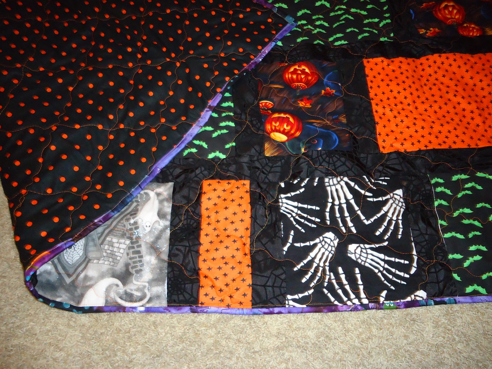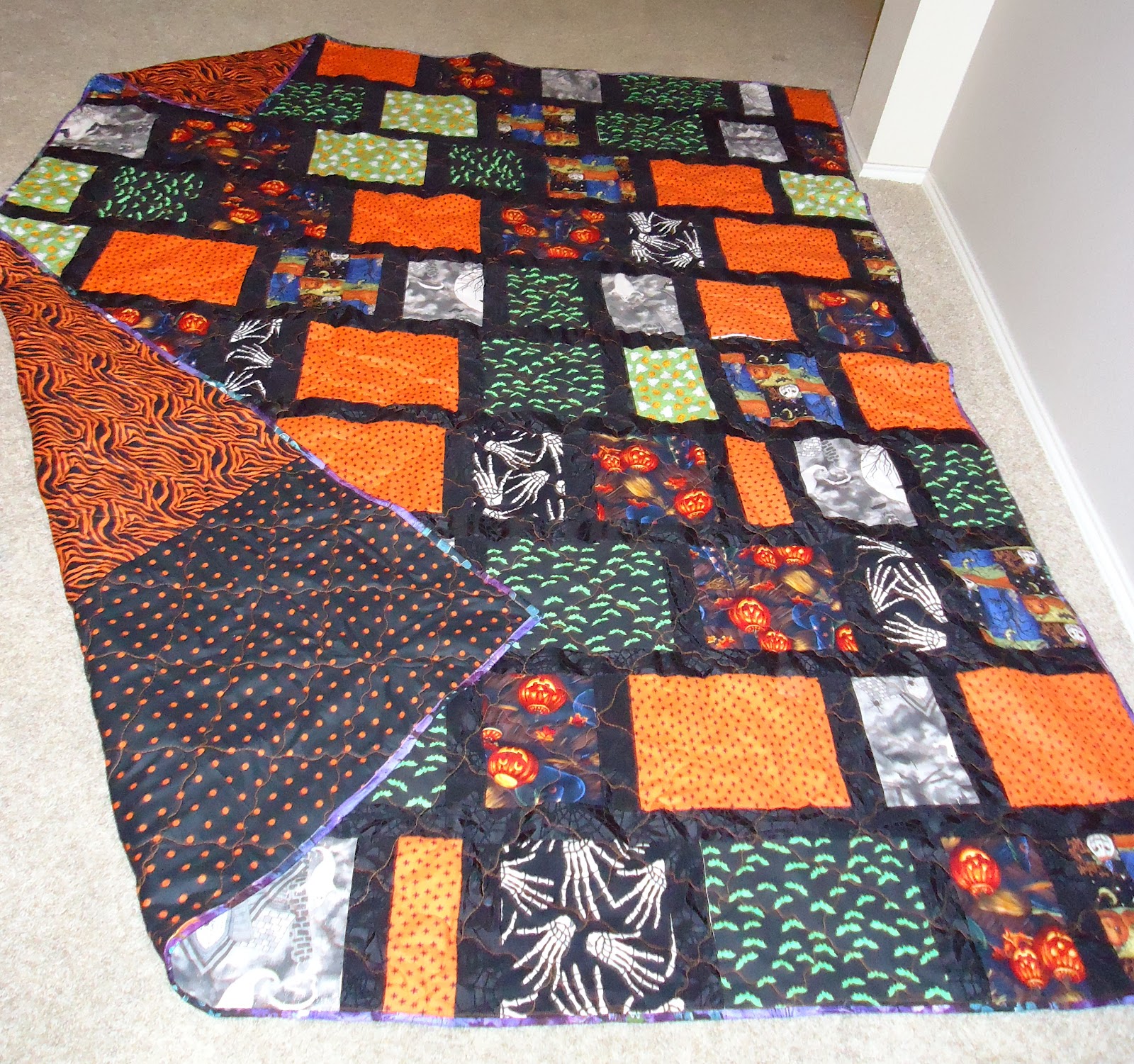 One of the first quilts I made when I was learning to sew was a traditional churn dash quilt. My mother and I gave this special quilt to my grandmother prior to her passing. The churn dash block represents so much more to me than just a traditional quilting block. The simplicity of the block lends itself to being altered in construction in so many ways. The possibilities for this block are limitless! I quilted this quilt with swirls on the white background and simple straight lines on the colored blocks.